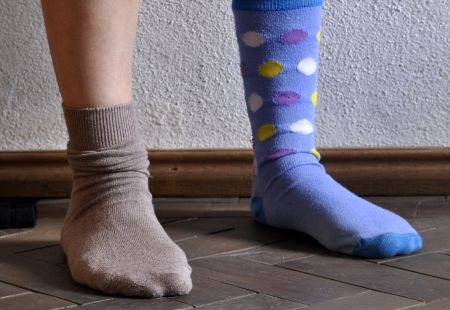 w kolorowych skarpetkach nie do pary.