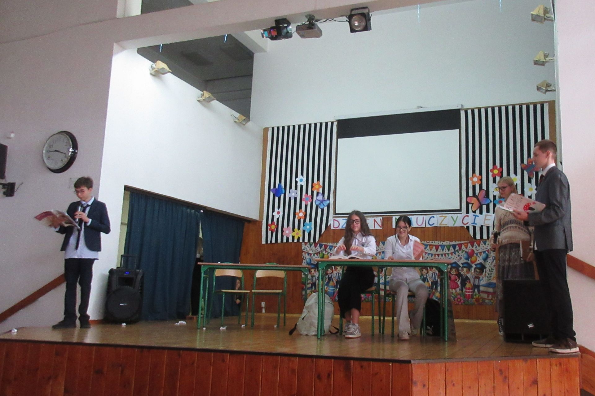 Dnia 15 października 2025 roku w Szkole Podstawowej nr 40 odbyła się uroczysta akademia z okazji Dnia Edukacji Narodowej. Wzięły w niej udział dzieci z grupy ,,Kotki”, które zaprezentowały dwie piosenki. Po akademii zostały wręczone wyróżnienia za udział w konkursie zorganizowanym z okazji Dnia Języków Obcych. Wyróżnienia otrzymali: Ofelka, Maja i Maciek z grupy ,,Kotki” oraz Inga z grupy ,,Zajączki”.