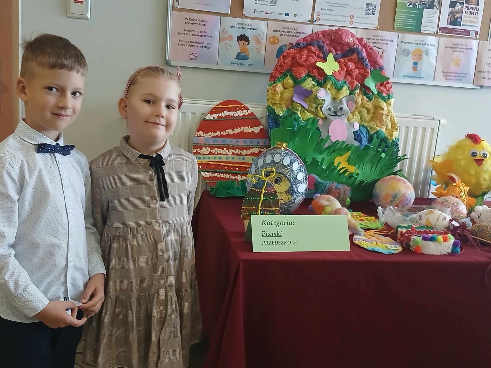Dnia 14 kwietnia 2025 roku Tosia i Szymon z grupy „Zajączki” odebrali nagrody za udział w konkursie „Święta jak malowane” organizowanym przez Miejski Dom Kultury Bogucice-Zawodzie. Tosia zdobyła II miejsce, Szymon wyróżnienie. Gratulujemy.