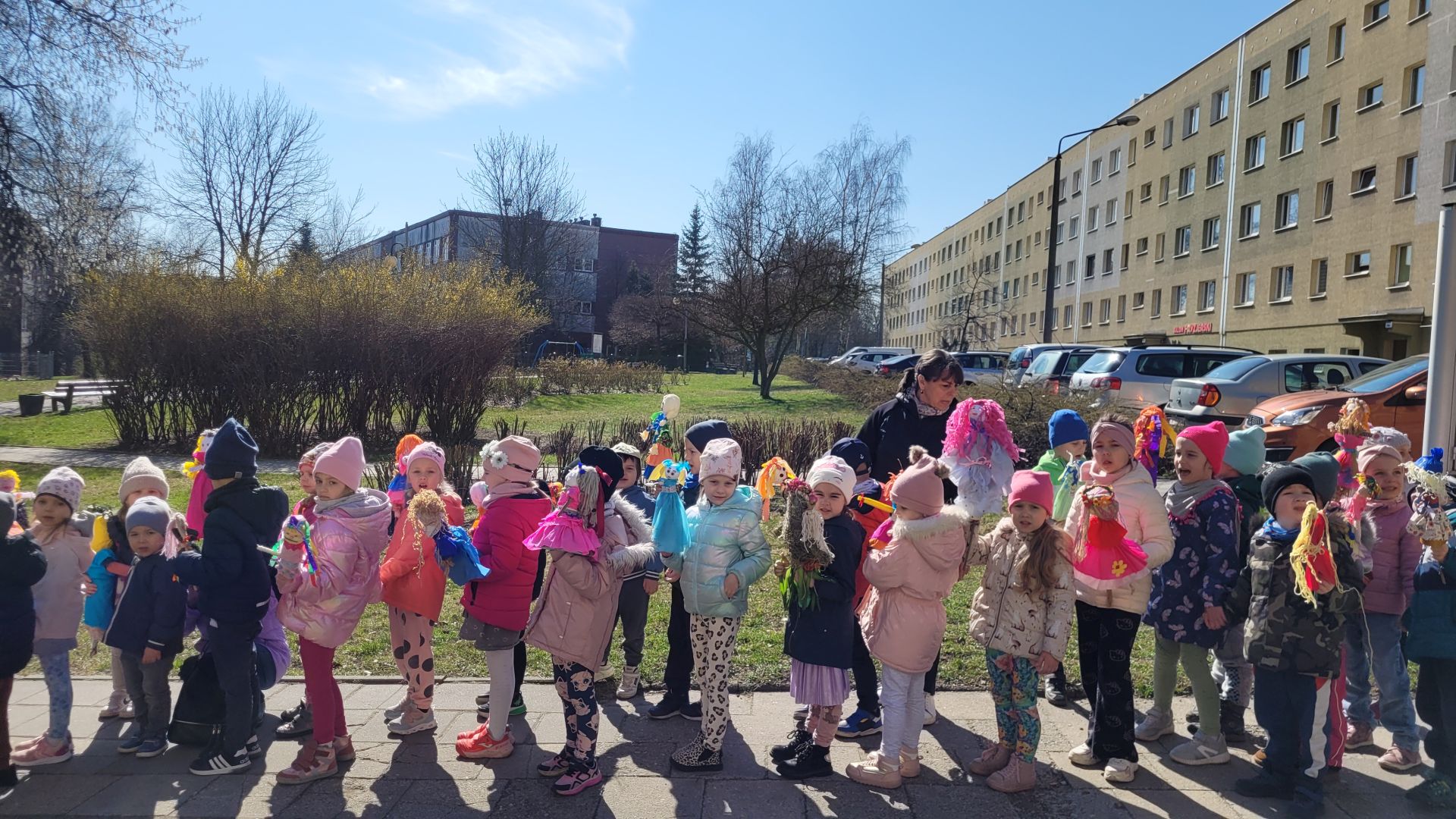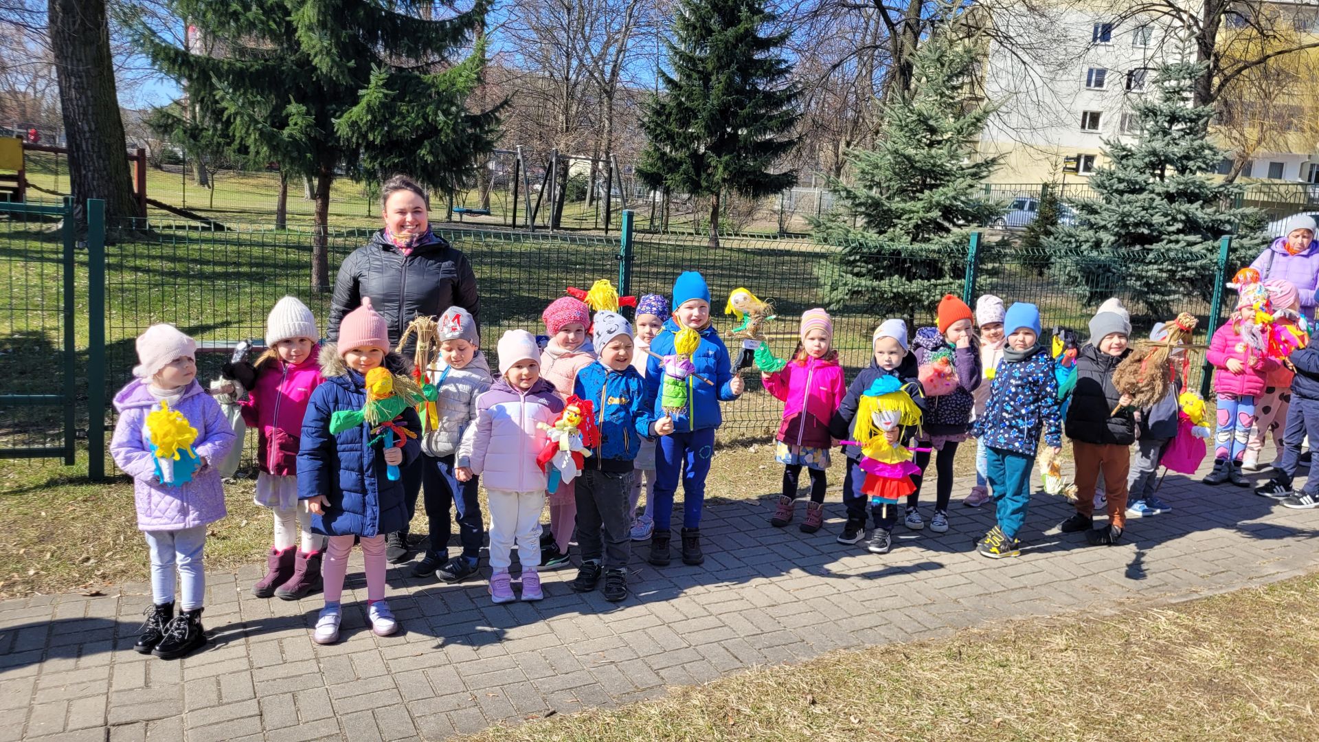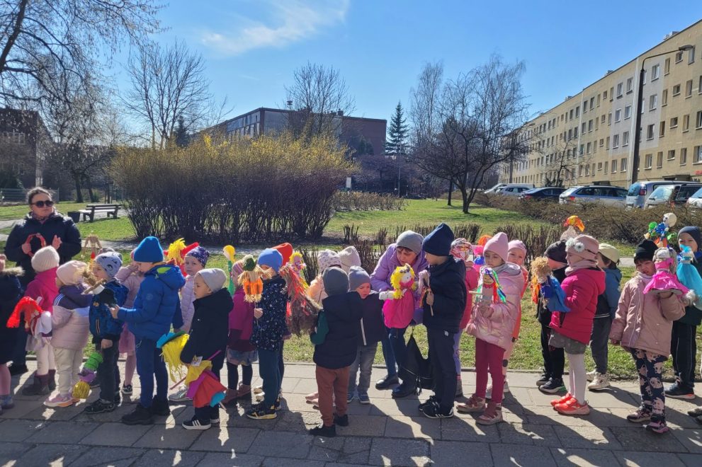 W dniu 21 marca 2025 roku dzieci z wszystkich grup wiekowych pożegnały zimę i przywitały wiosnę. Wraz z przygotowanymi w domu marzannami spacerowały po ogrodzie przedszkolnym i osiedlu im. Jerzego Kukuczki, śpiewały wiosenne piosenki, grały na instrumentach i wyganiały zimę.