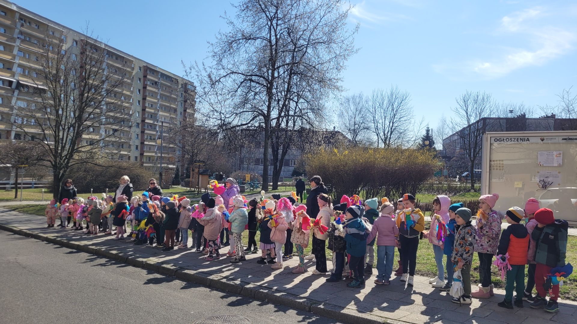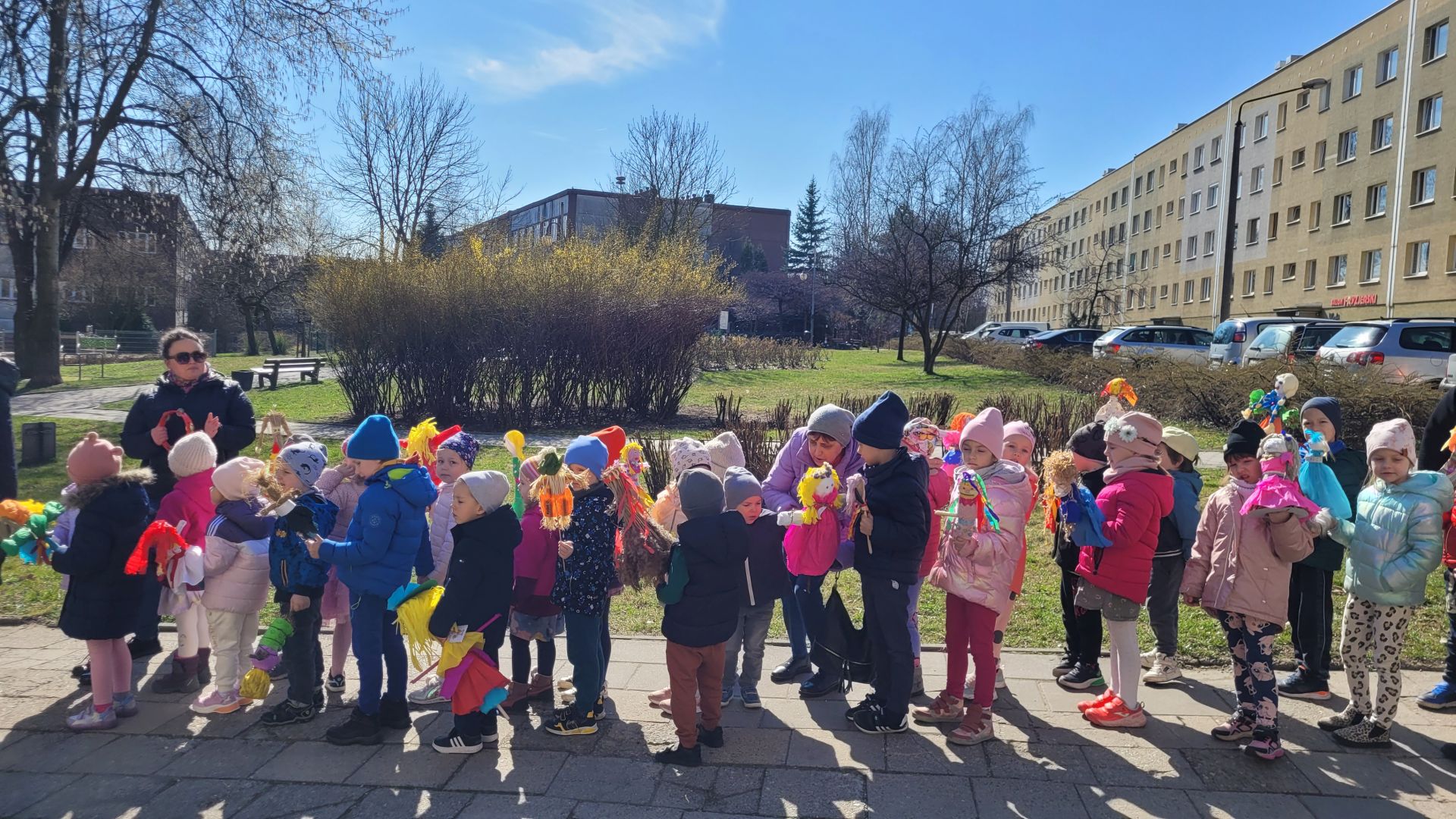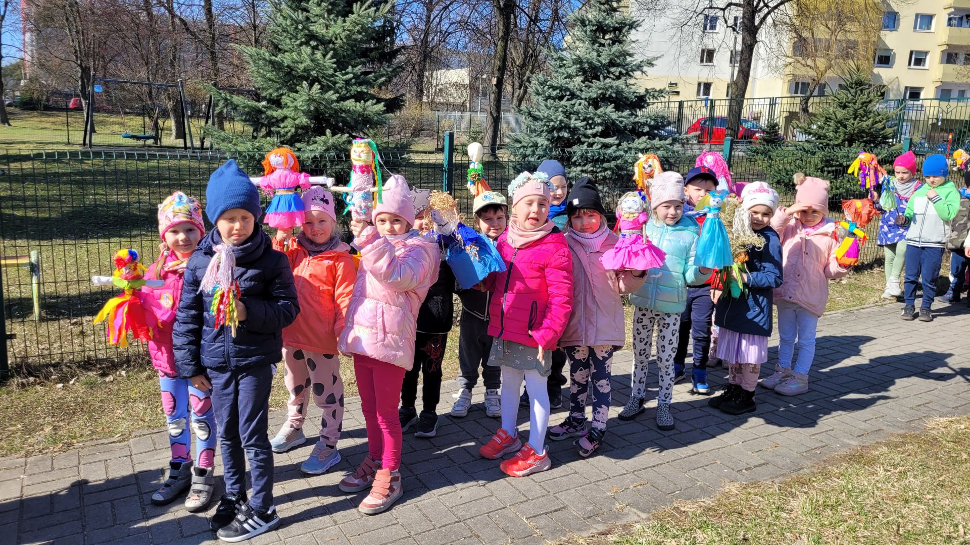 W dniu 21 marca 2025 roku dzieci z wszystkich grup wiekowych pożegnały zimę i przywitały wiosnę. Wraz z przygotowanymi w domu marzannami spacerowały po ogrodzie przedszkolnym i osiedlu im. Jerzego Kukuczki, śpiewały wiosenne piosenki, grały na instrumentach i wyganiały zimę.