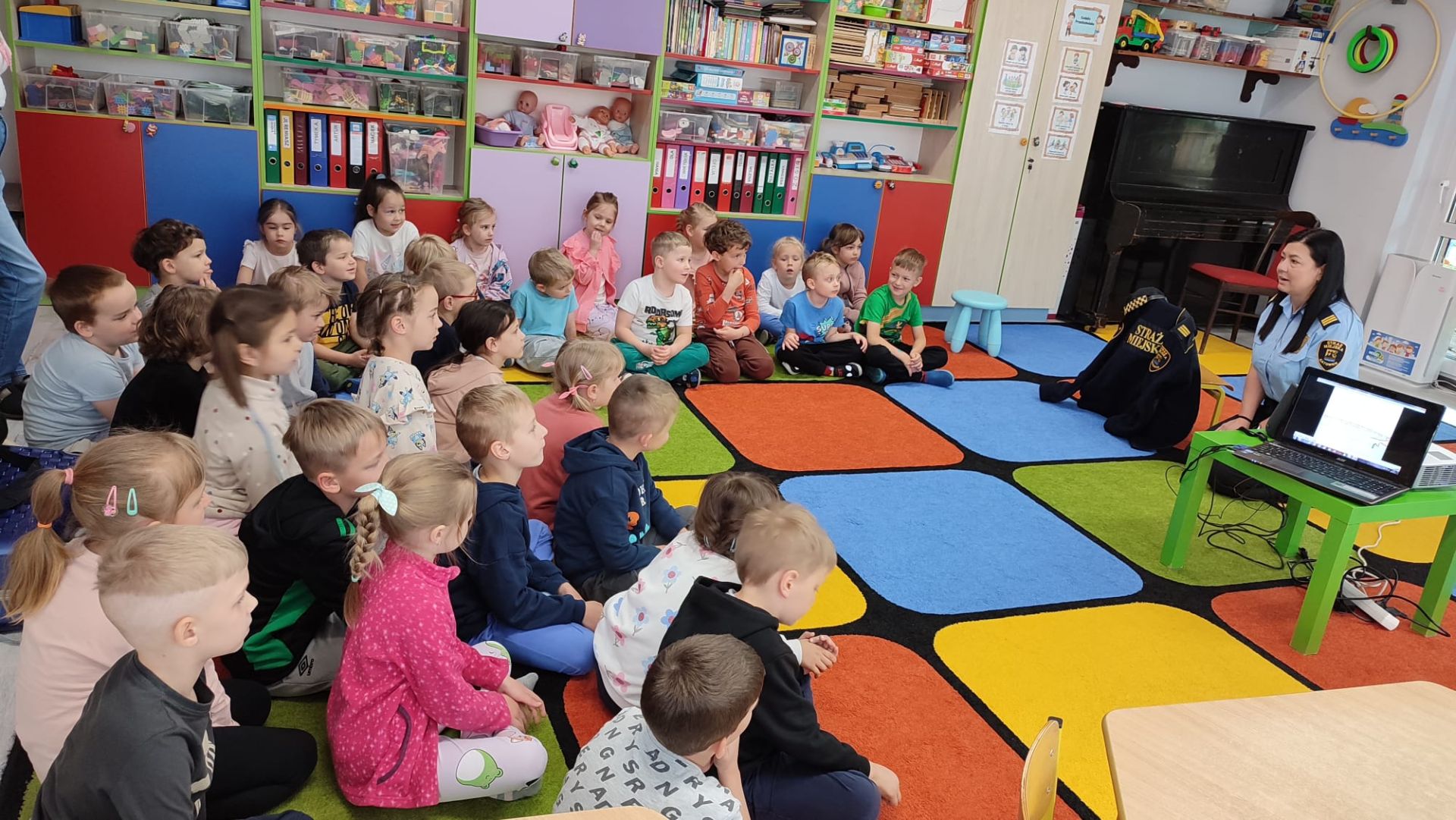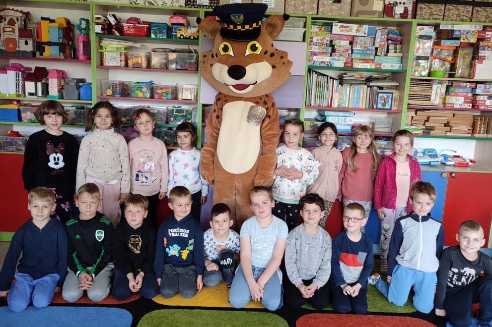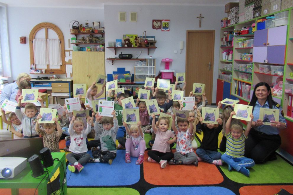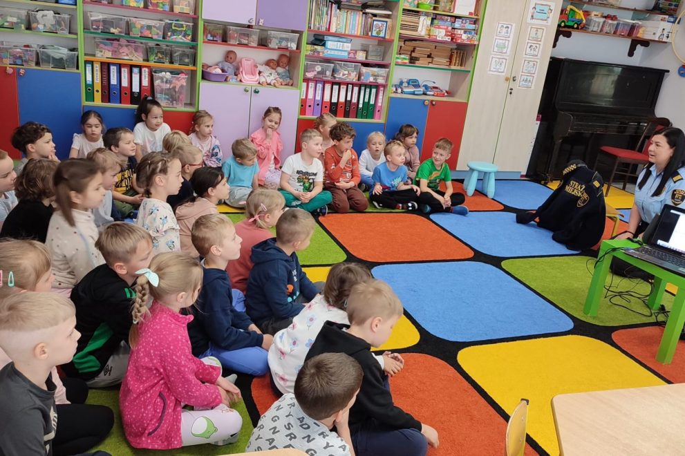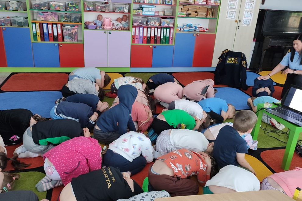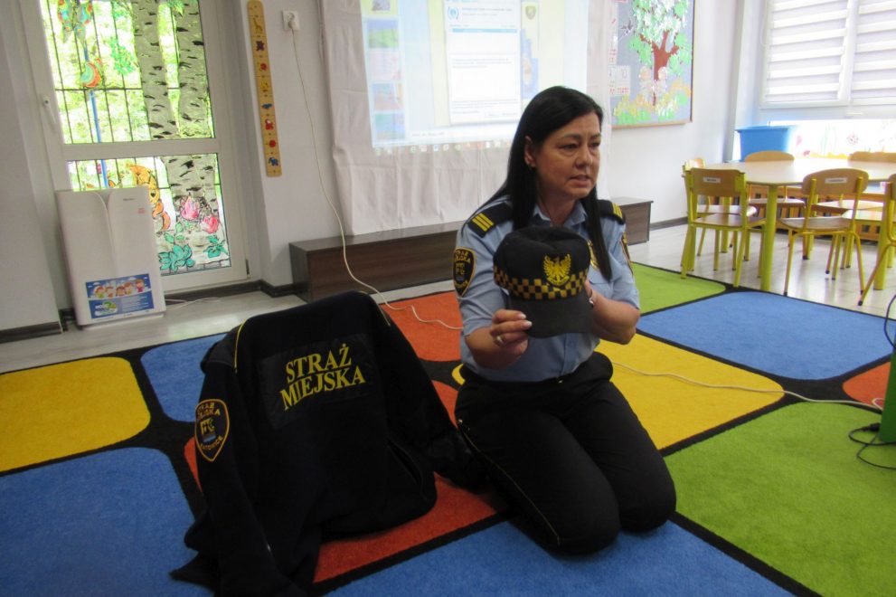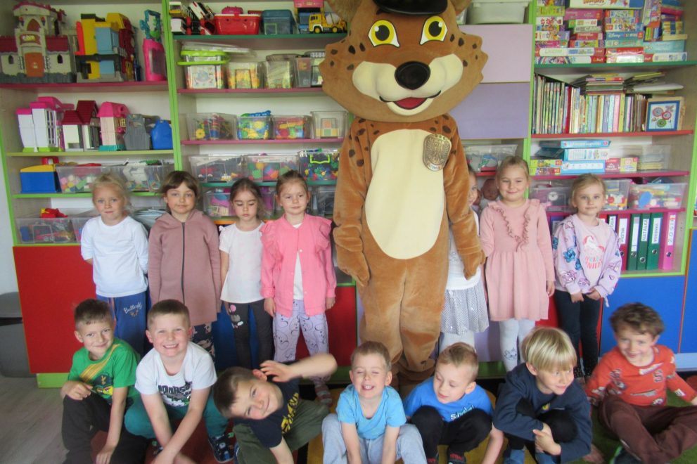Dnia 15 maja 2025 roku dzieci z wszystkich grup wzięły udział w spotkaniach z przedstawicielami Zespołu Prewencji i Profilaktyki Społecznej Straży Miejskiej w Katowicach.