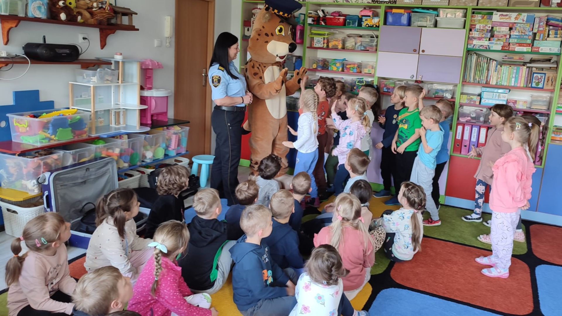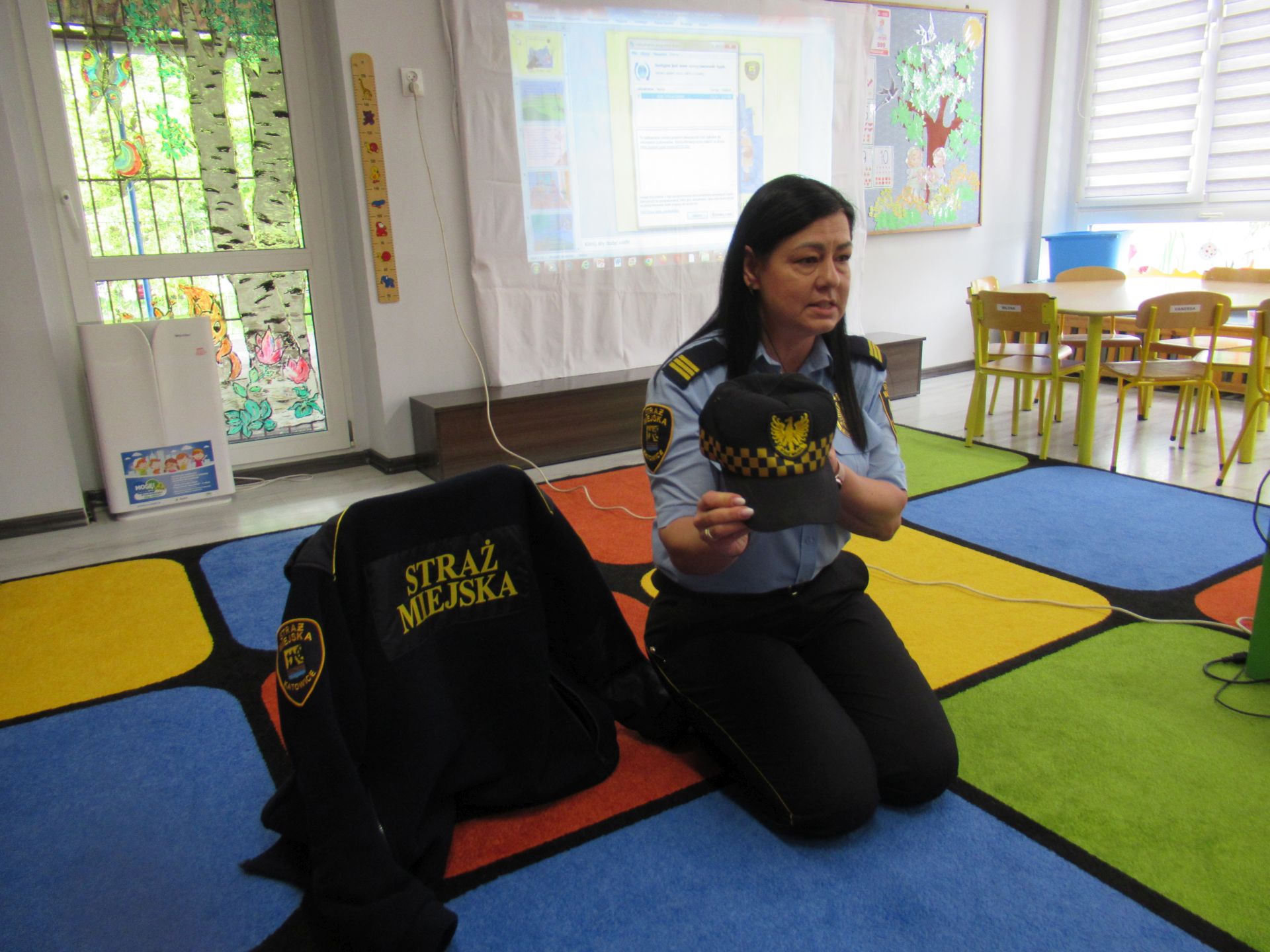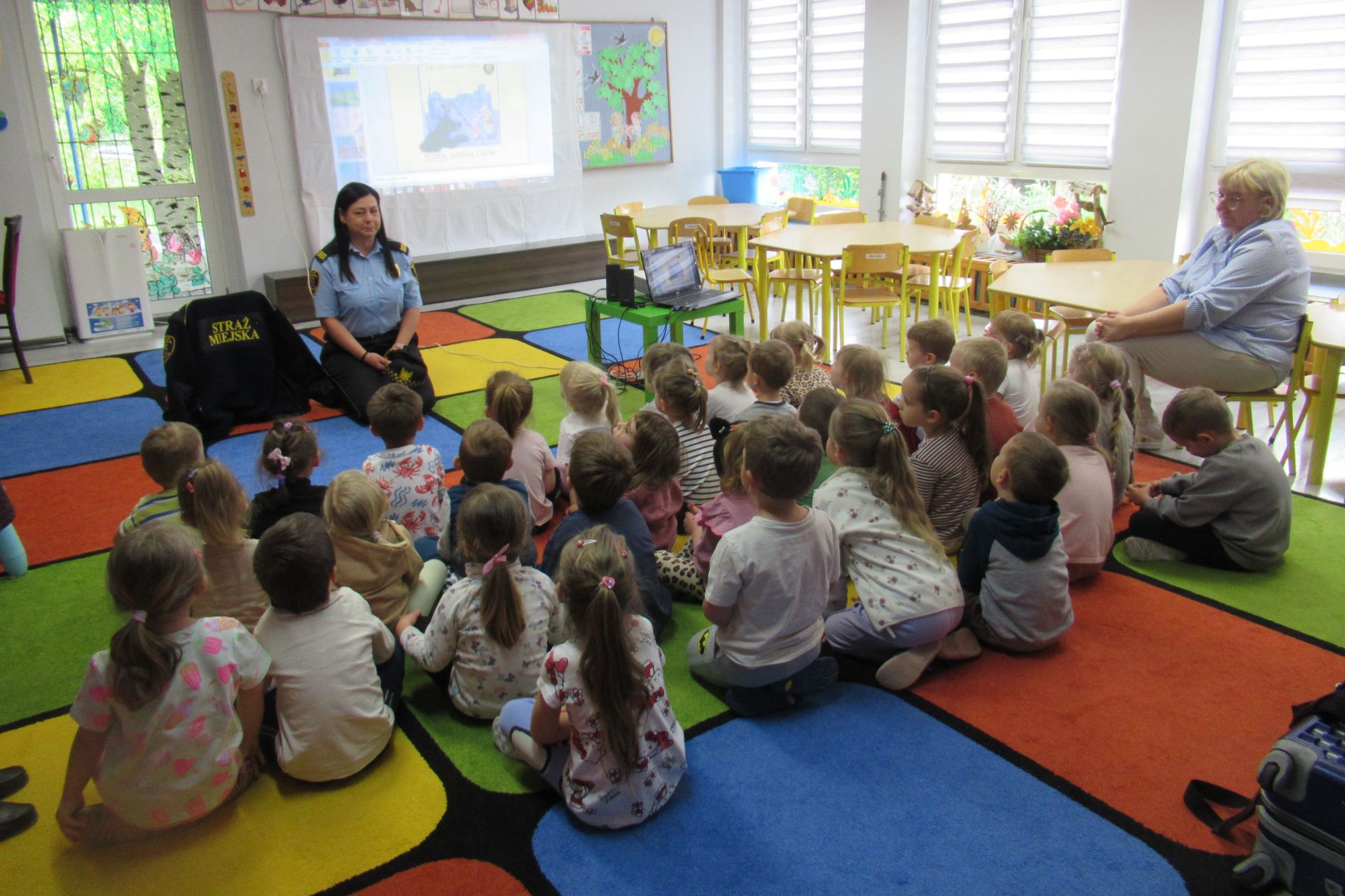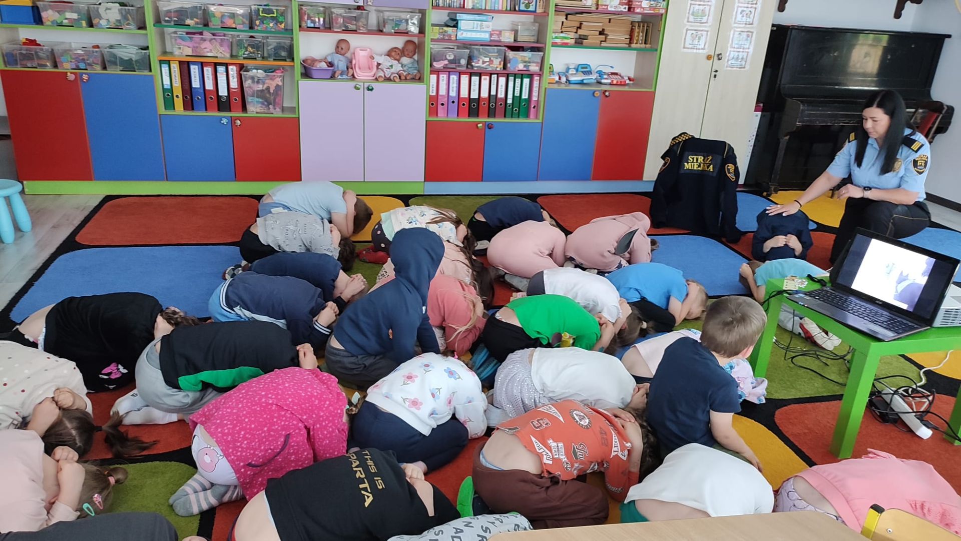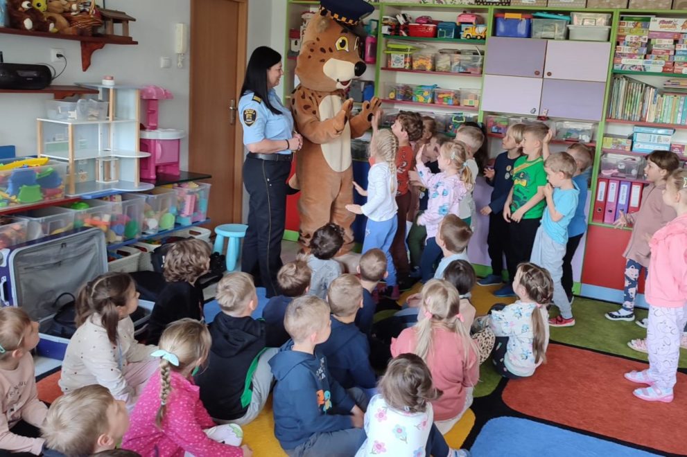 Dnia 15 maja 2025 roku dzieci z wszystkich grup wzięły udział w spotkaniach z przedstawicielami Zespołu Prewencji i Profilaktyki Społecznej Straży Miejskiej w Katowicach.