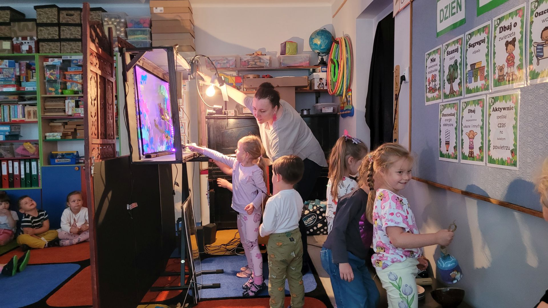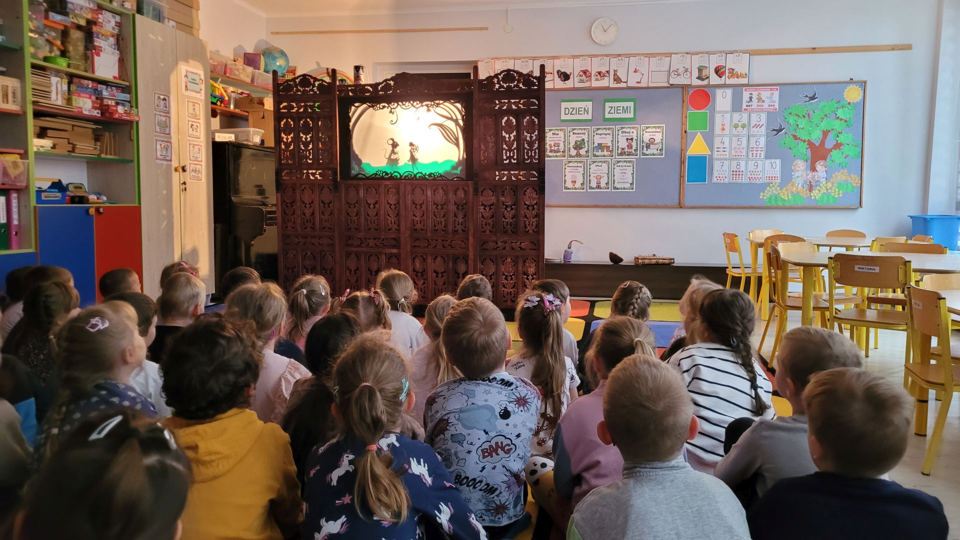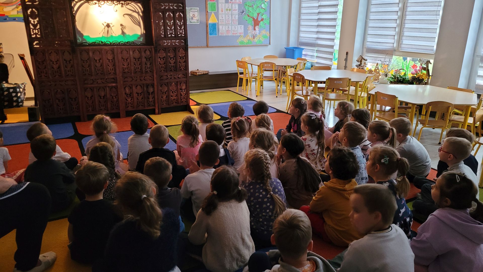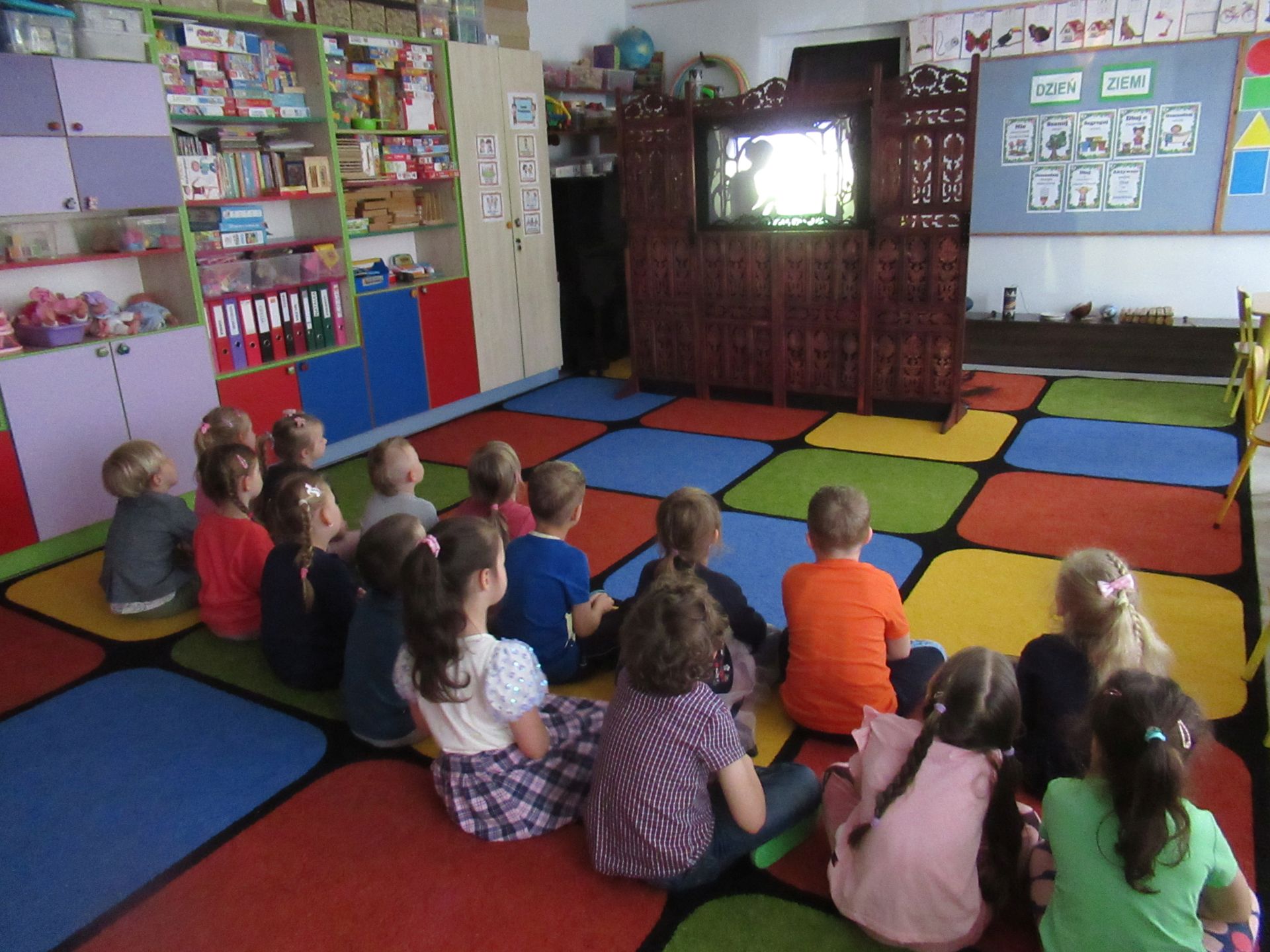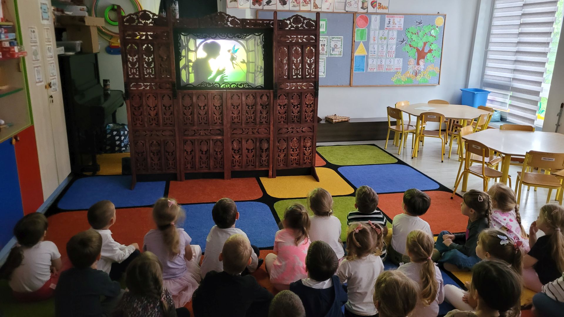 Dnia 24 kwietnia 2025 roku dzieci z wszystkich grup wiekowych wzięły udział w TEATRZE CIENI pt. „CALINECZKA”.