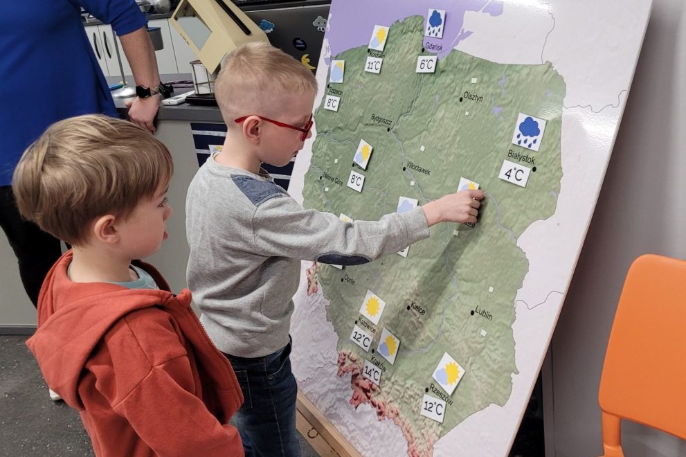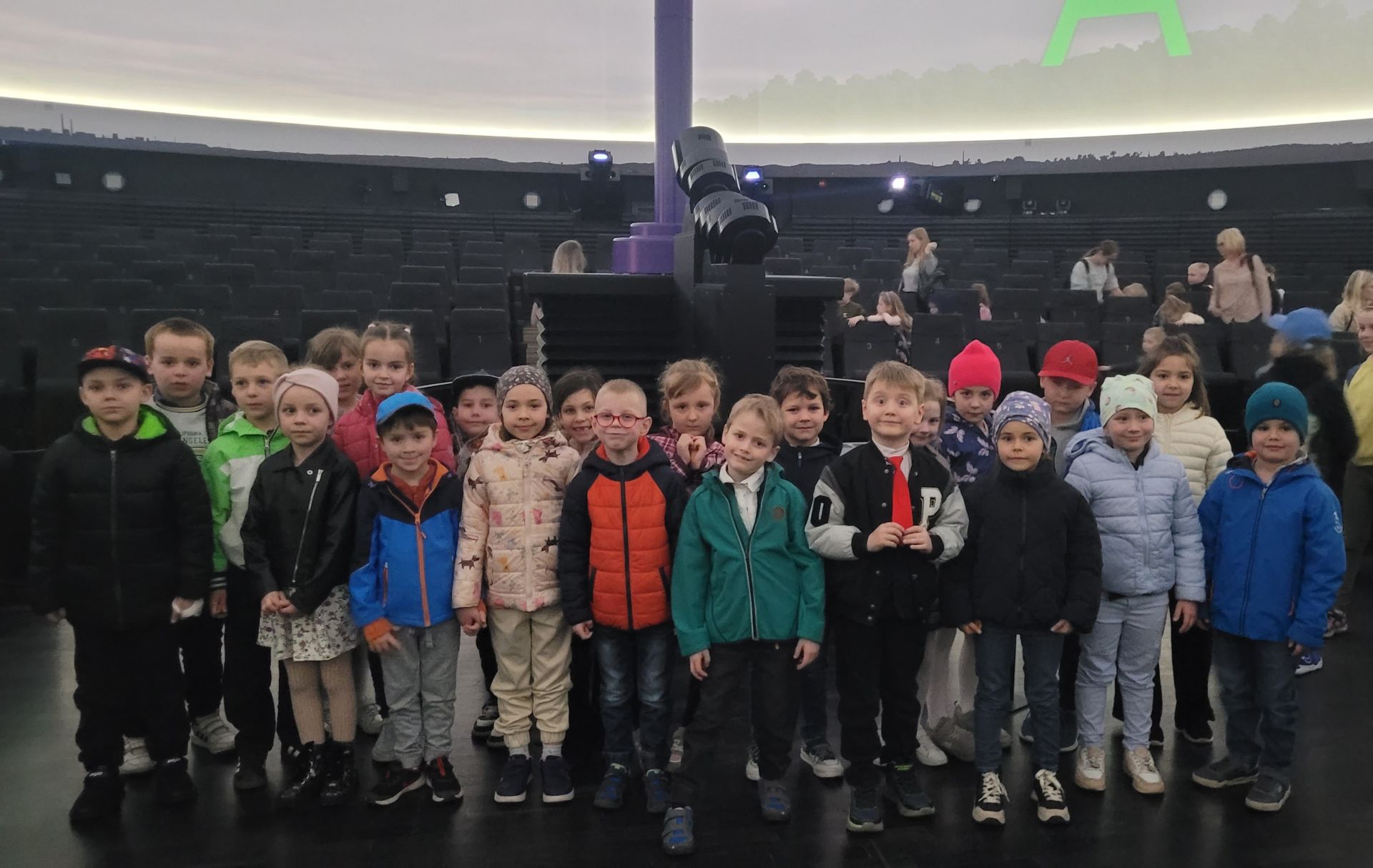 Dnia 15 kwietnia 2025 roku dzieci z grupy„Kotki” wzięły udział w warsztatach meteorologicznych i seansie pt. „Jesteśmy gwiazdami” w Planetarium Śląskim.