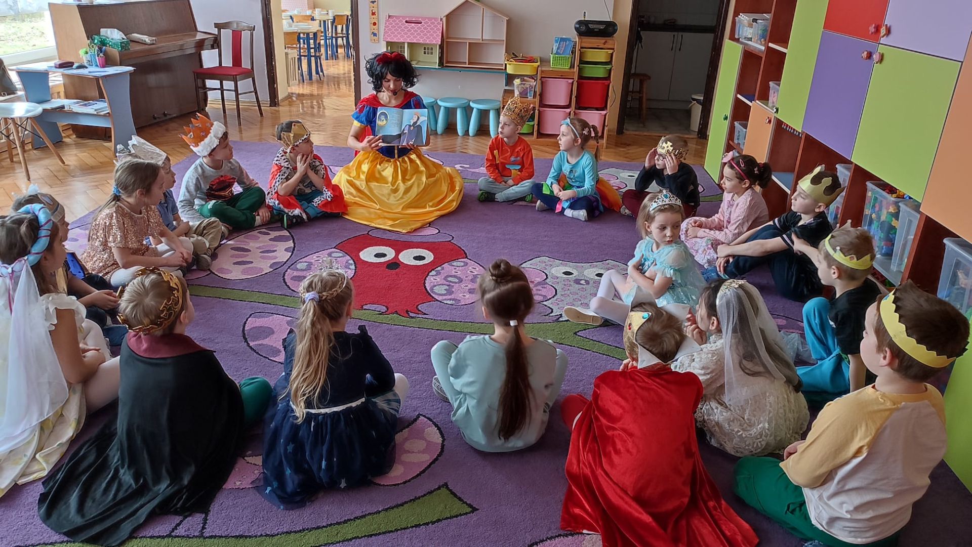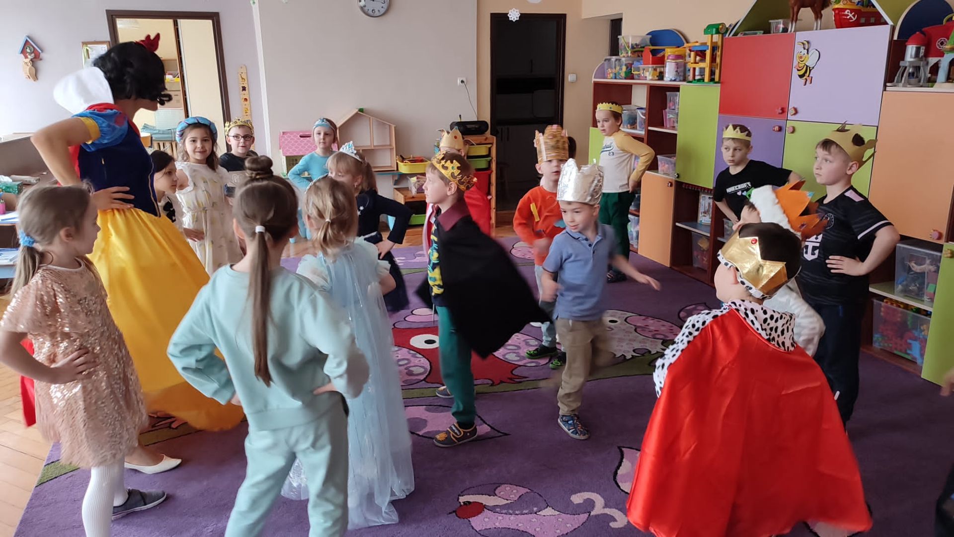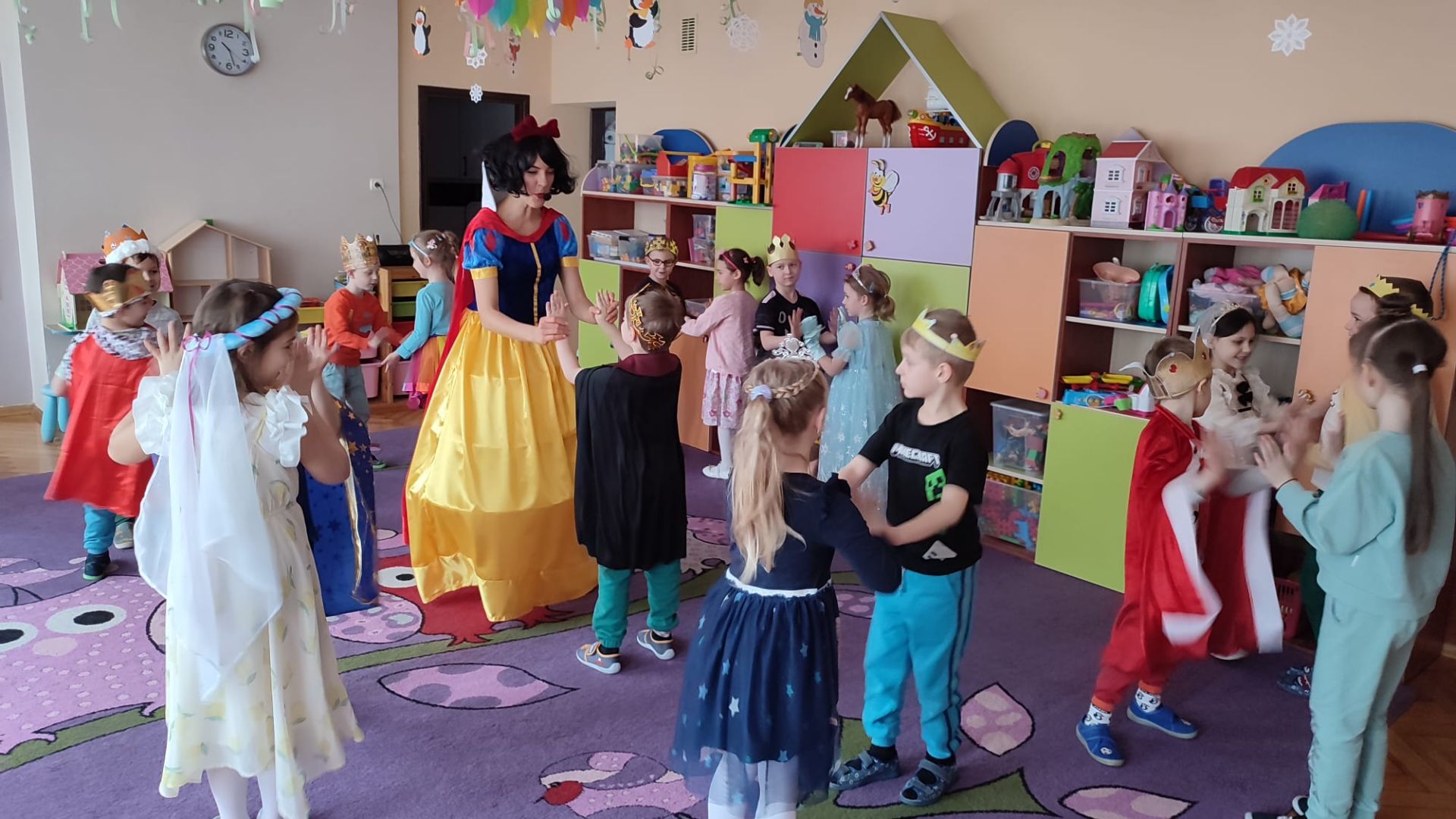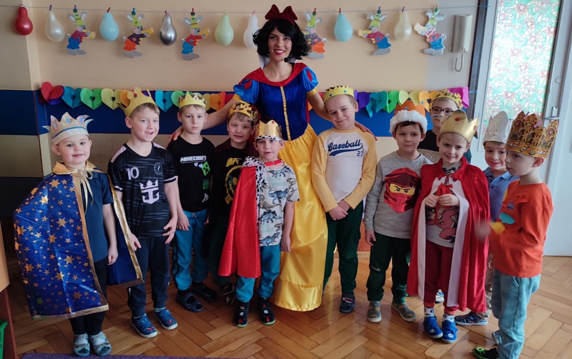 Dnia 13 lutego 2025 roku dzieci z wszystkich grup wiekowych wzięły udział w zajęciach prowadzonych przez animatorkę. Temat zajęć: „Księżniczki i książęta”.