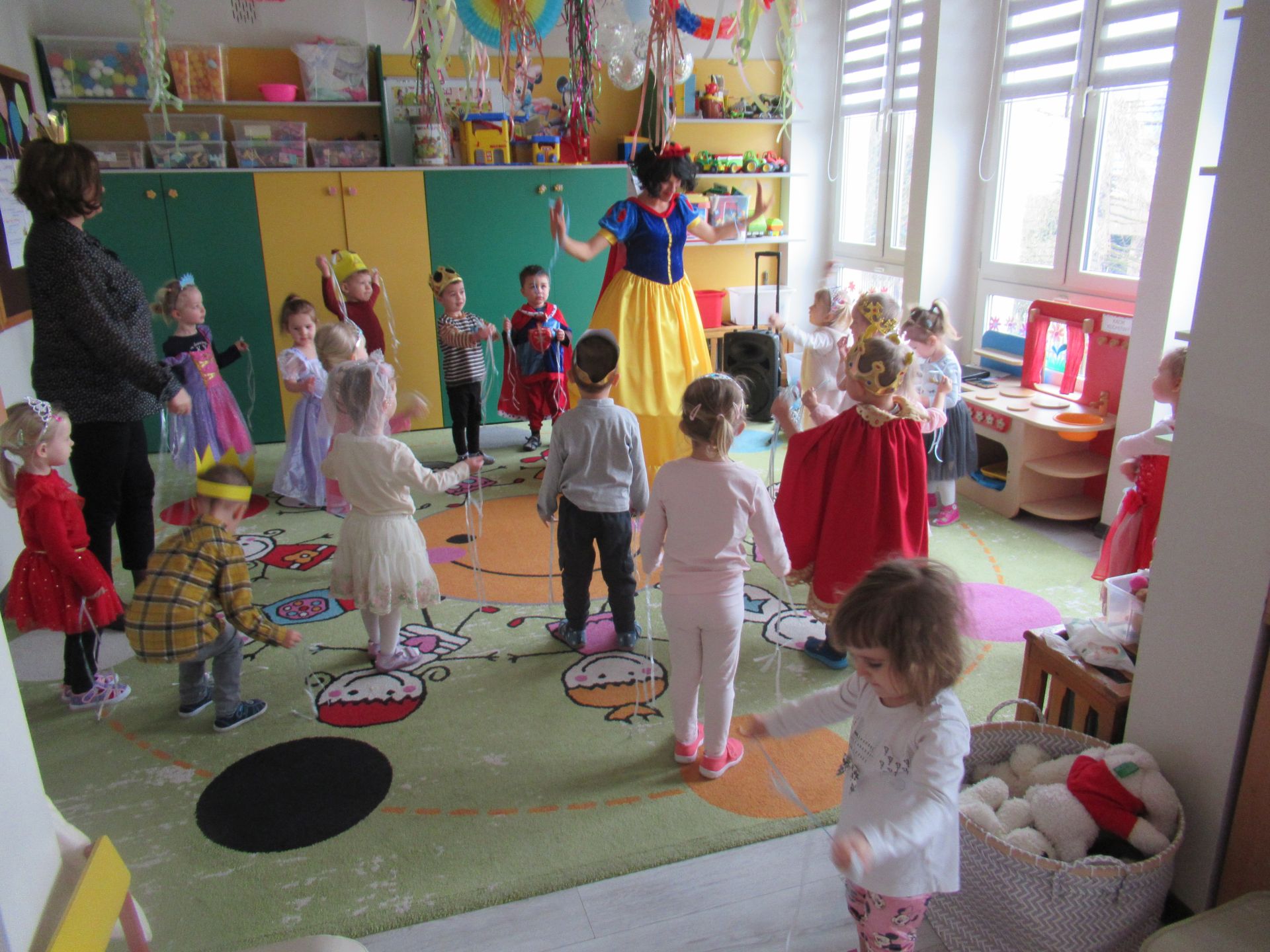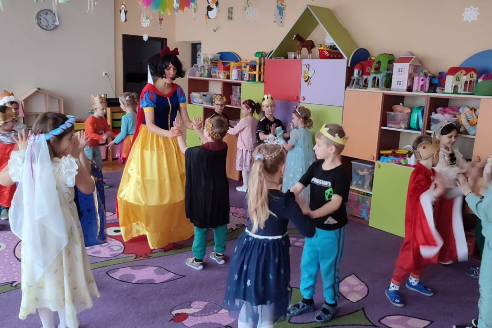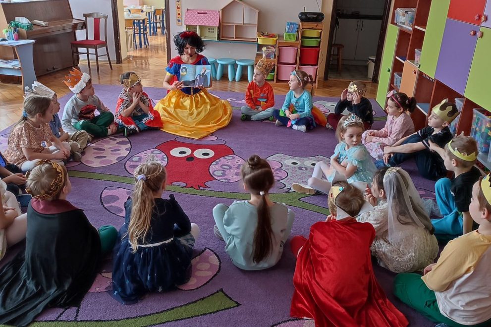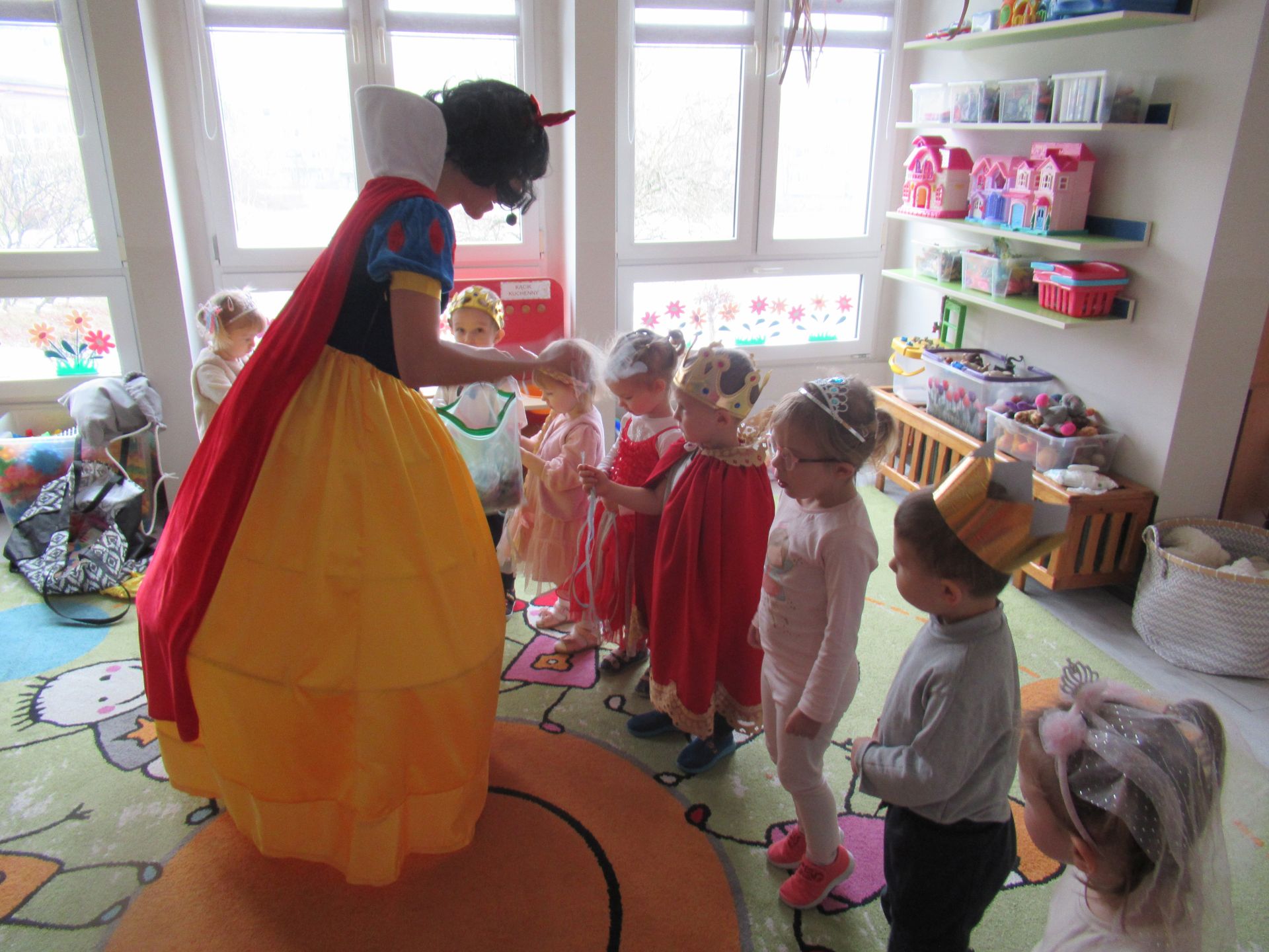 Dnia 13 lutego 2025 roku dzieci z wszystkich grup wiekowych wzięły udział w zajęciach prowadzonych przez animatorkę. Temat zajęć: „Księżniczki i książęta”.