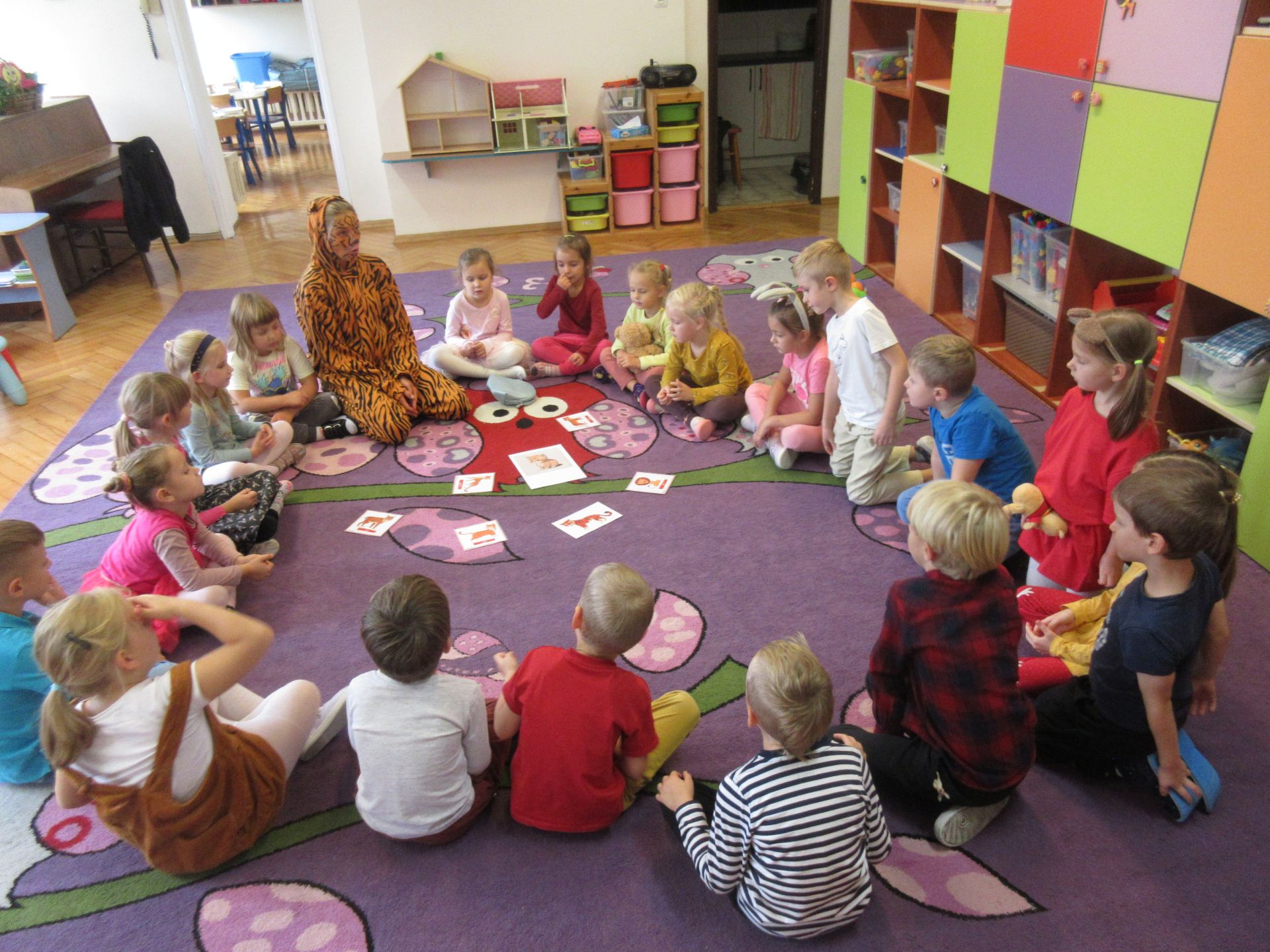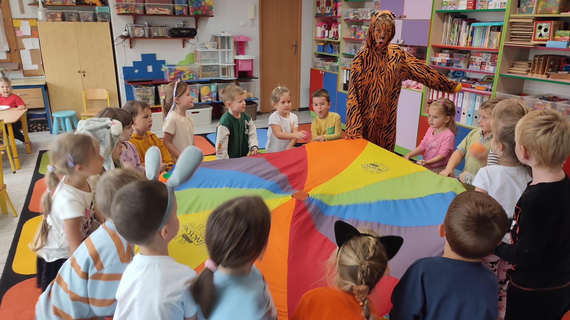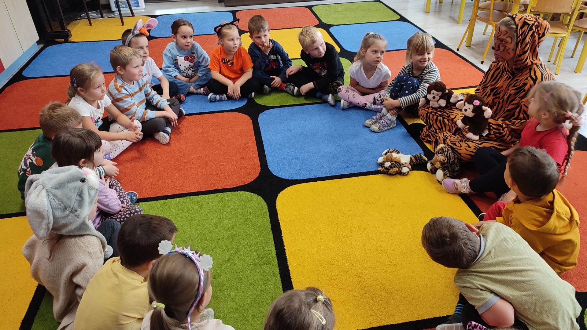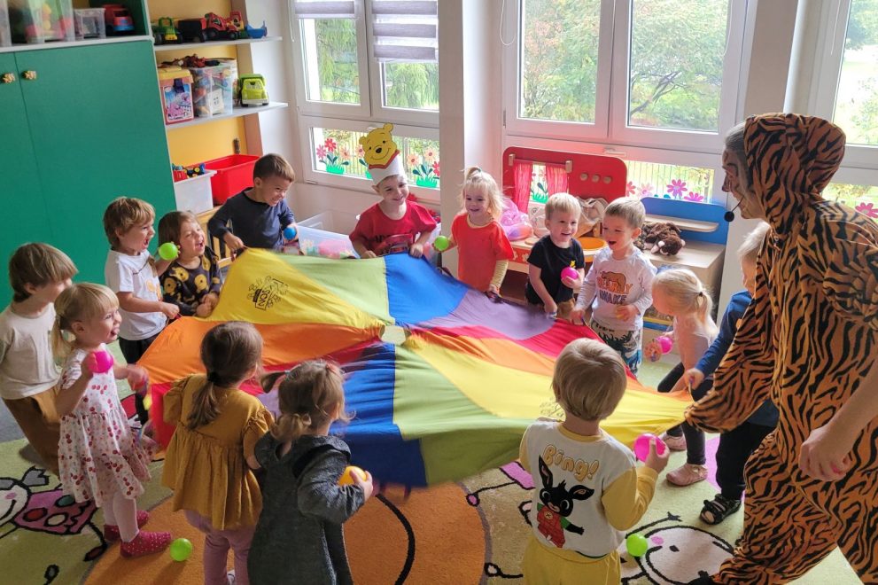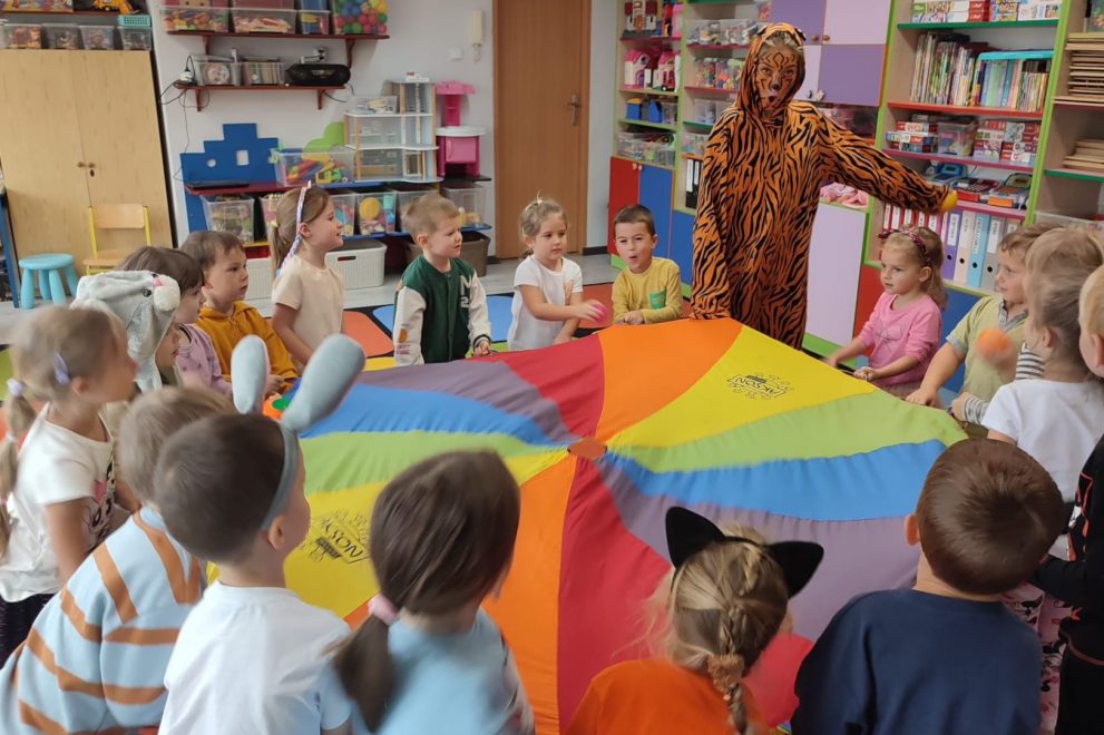 Dnia 7 października 2025 roku dzieci z wszystkich grup wiekowych wzięły udział w zajęciach prowadzonych przez animatorkę.